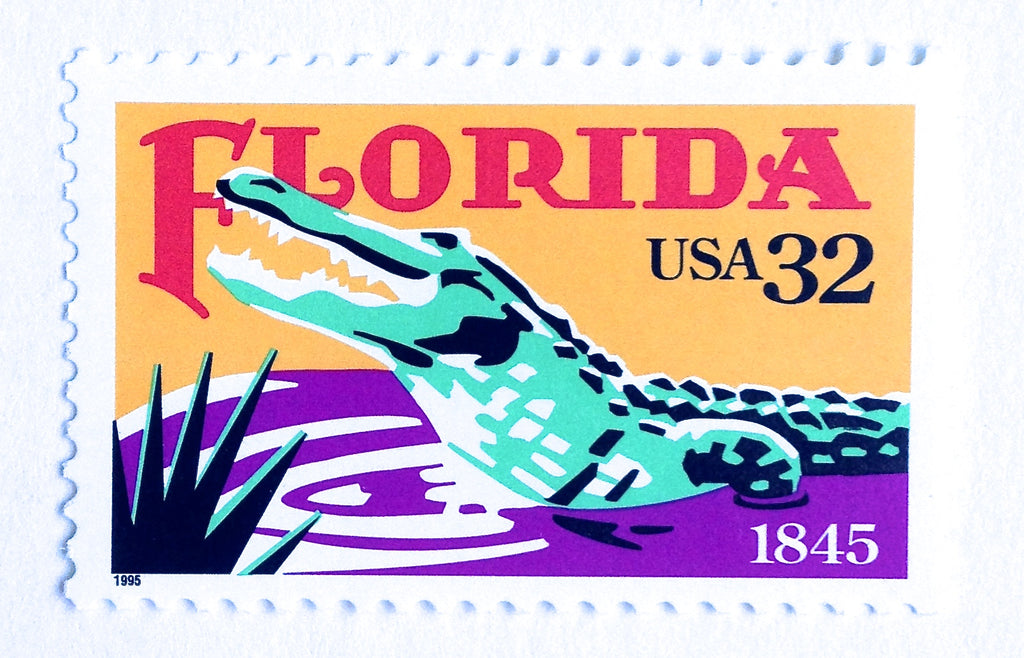 10 Florida Alligator Stamps Vintage 32 Cent Unused Stamps Florida Gator Postage Stamps for Mailing
