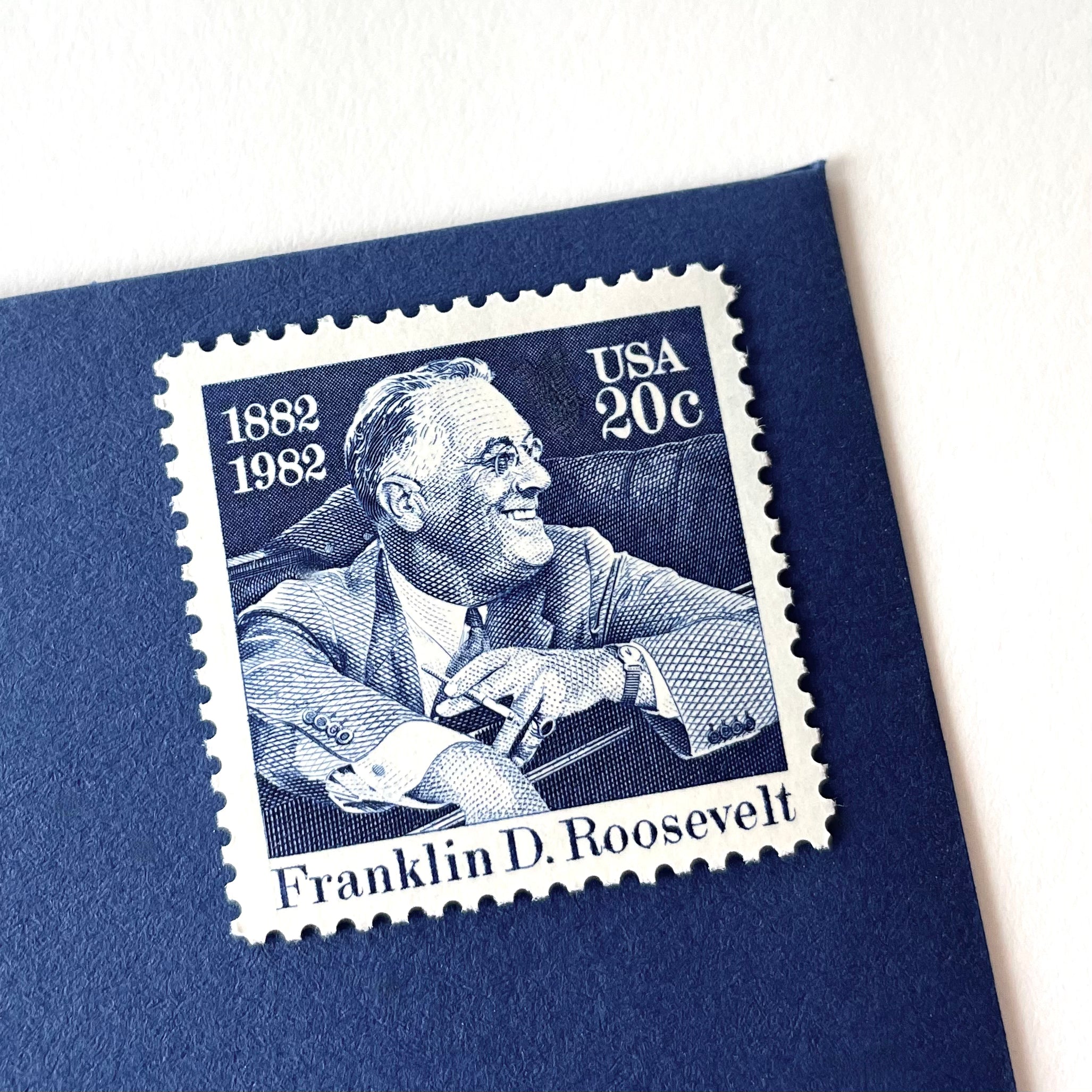 These navy blue vintage Roosevelt stamps are perfectly suitable for use as postage for mailing, as long as you use additional stamps to add up to the current postage rate. These historic stamps will add a classic touch to your political correspondence, blue and white wedding invitations and cards.