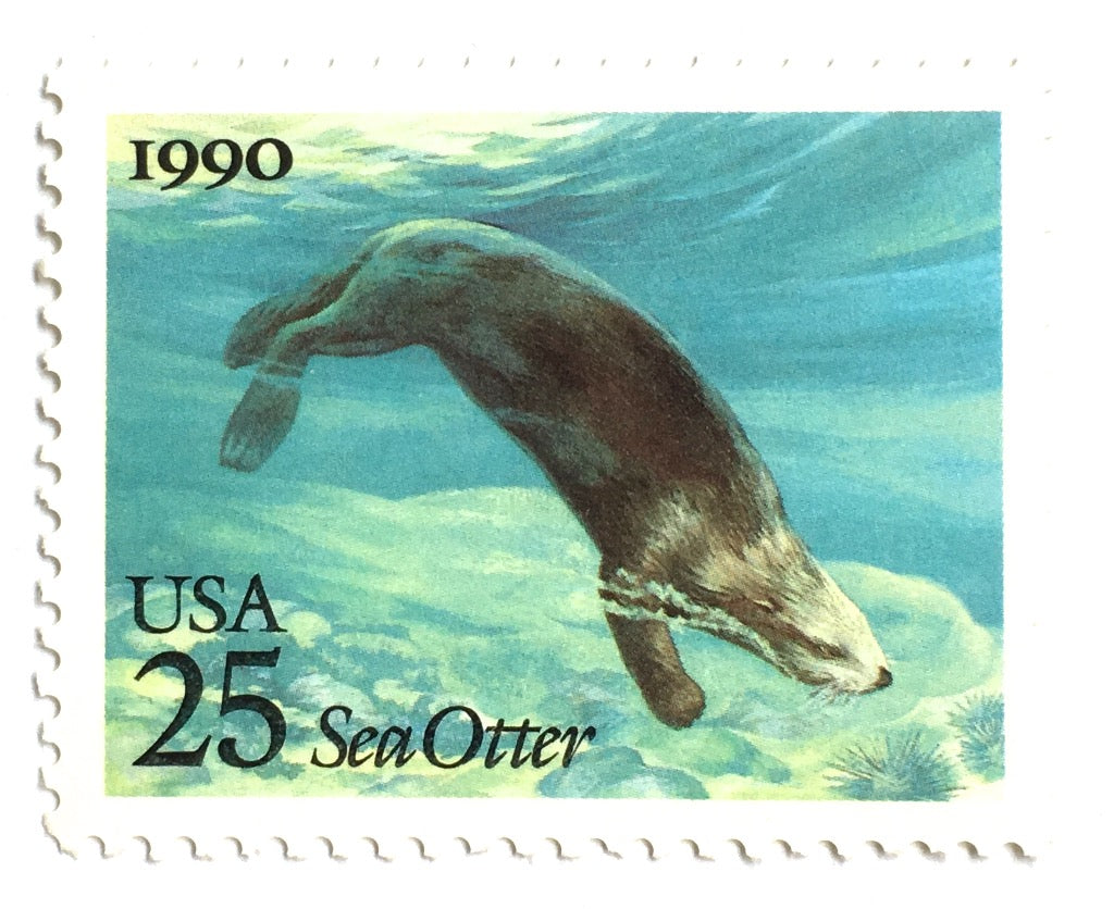 10 Unused Sea Otter Stamps // Vintage 25 Cent Otters // Postage Stamps for Mailing