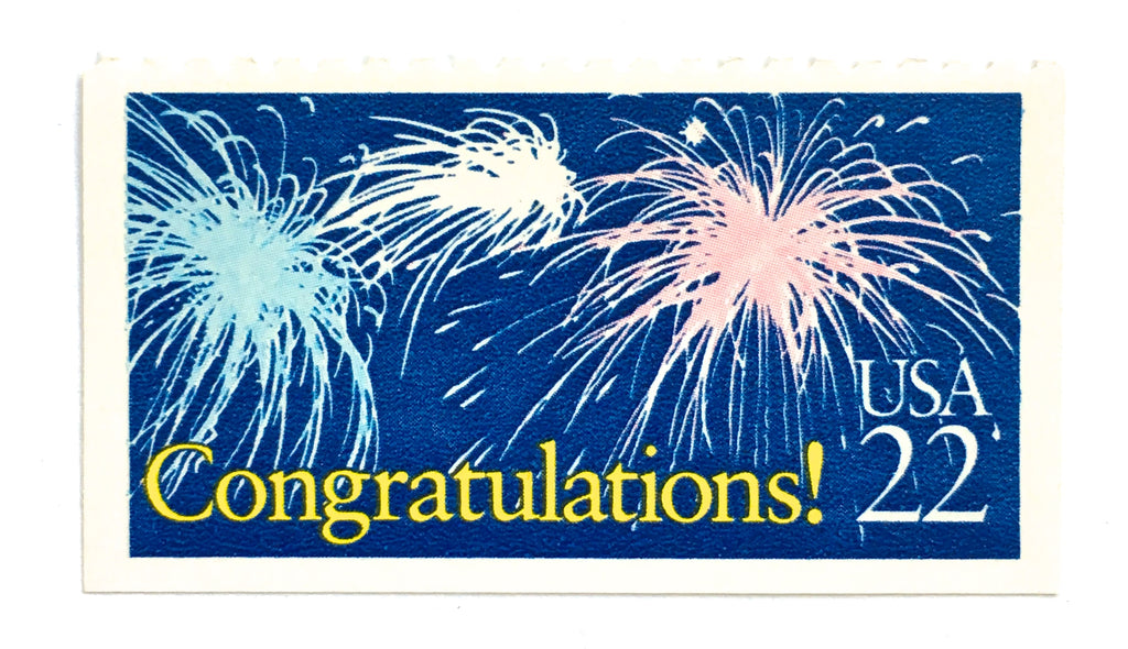 10 Congratulations Postage Stamps Vintage Unused 22 Cent Congrats Stamps Fireworks Celebration Postage Stamps for Mailing