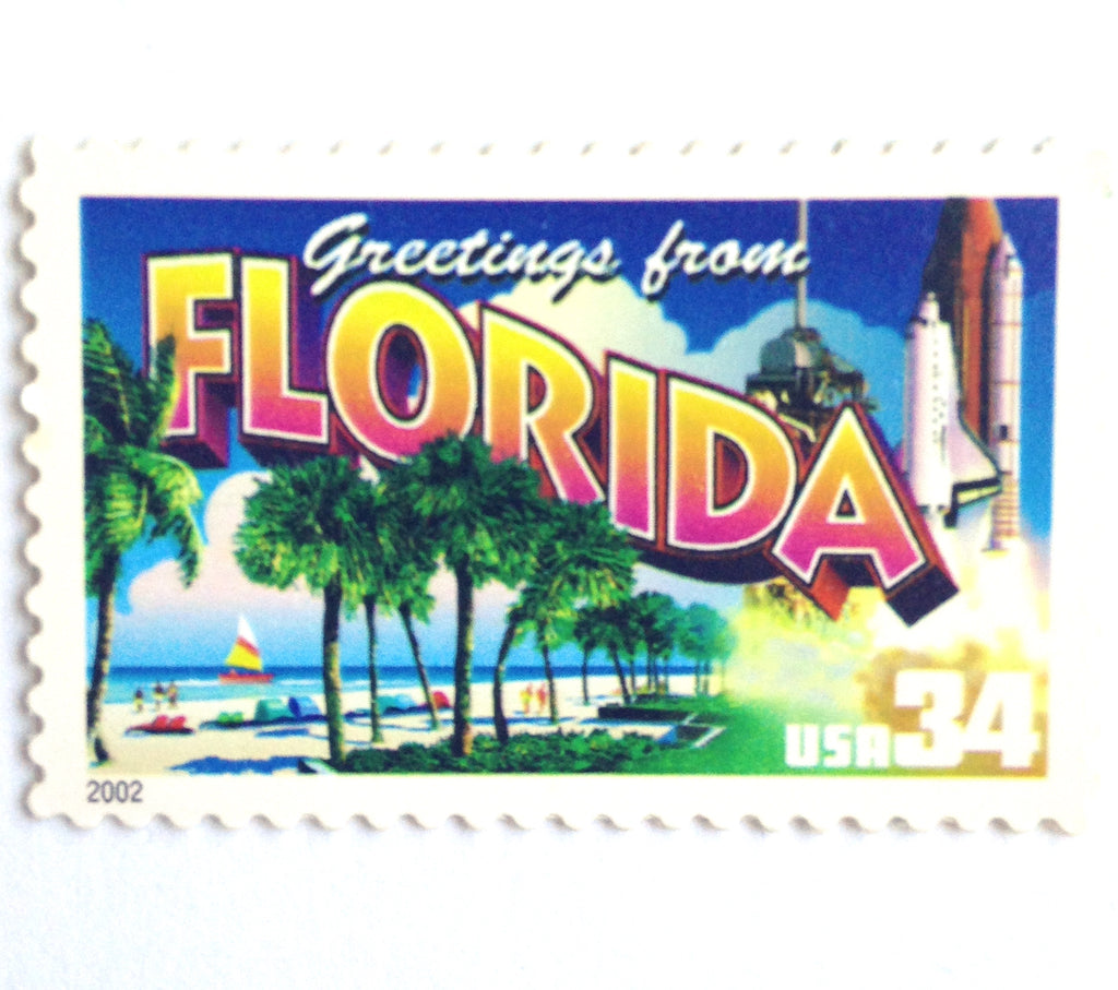 10 Florida Vintage Postage Stamps Unused Greetings from Florida Stamps Palm Tree Beach and Space Shuttle Stamps for Mailing