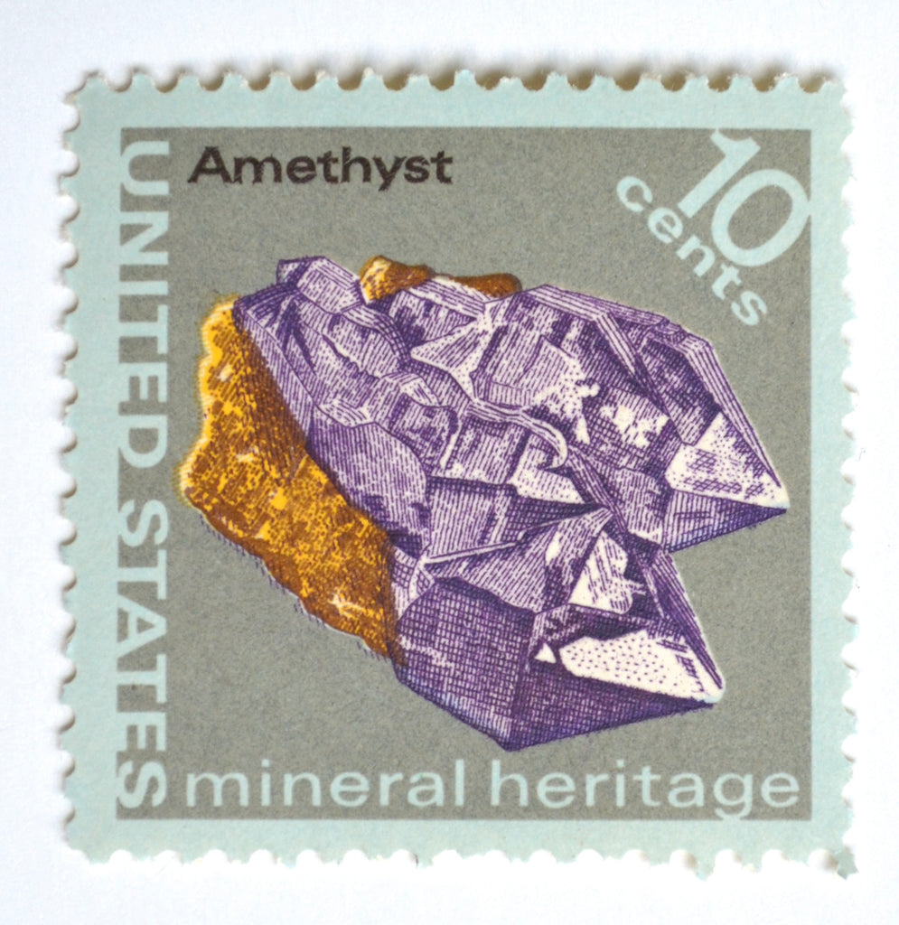 10 Amethyst Stamps Vintage Unused Lilac Lavender Gem Stone Postage Stamps for Mailing