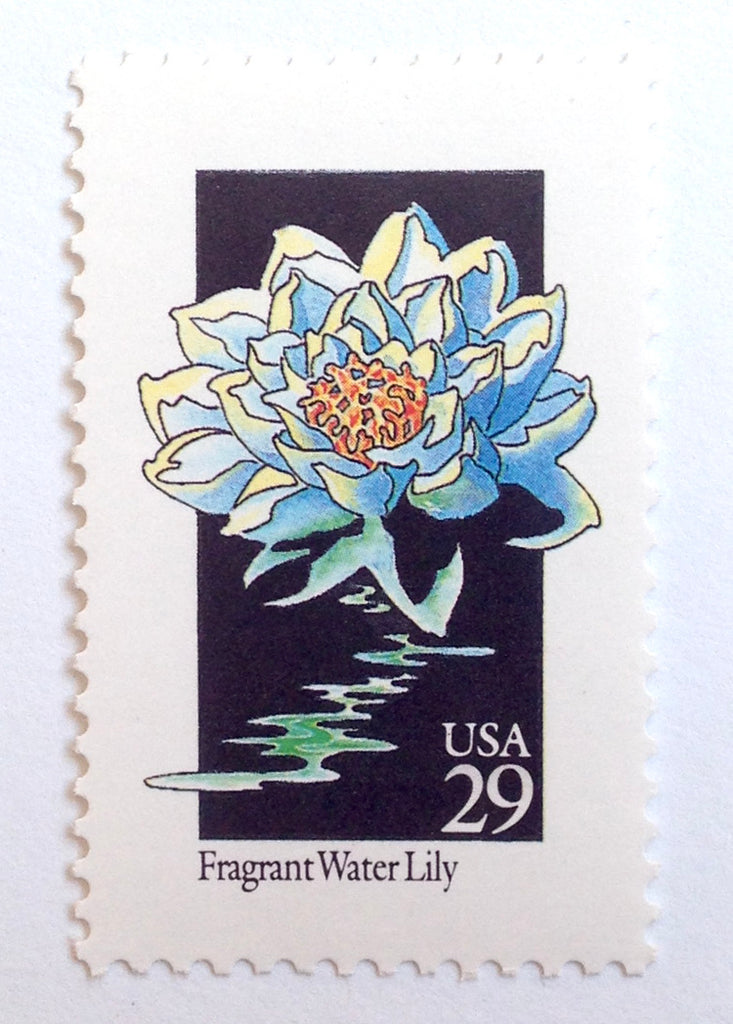 10 Water Lily Postage Vintage Unused Black and White Flower Stamps For Mailing