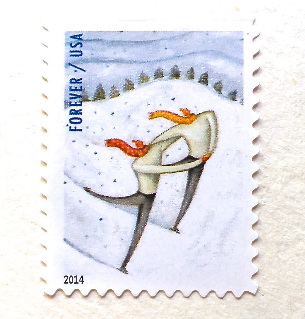 5 Ice Skating Forever Postage Stamps // Ice Skating Couple // Winter Christmas Holiday Forever Stamps for Mailing