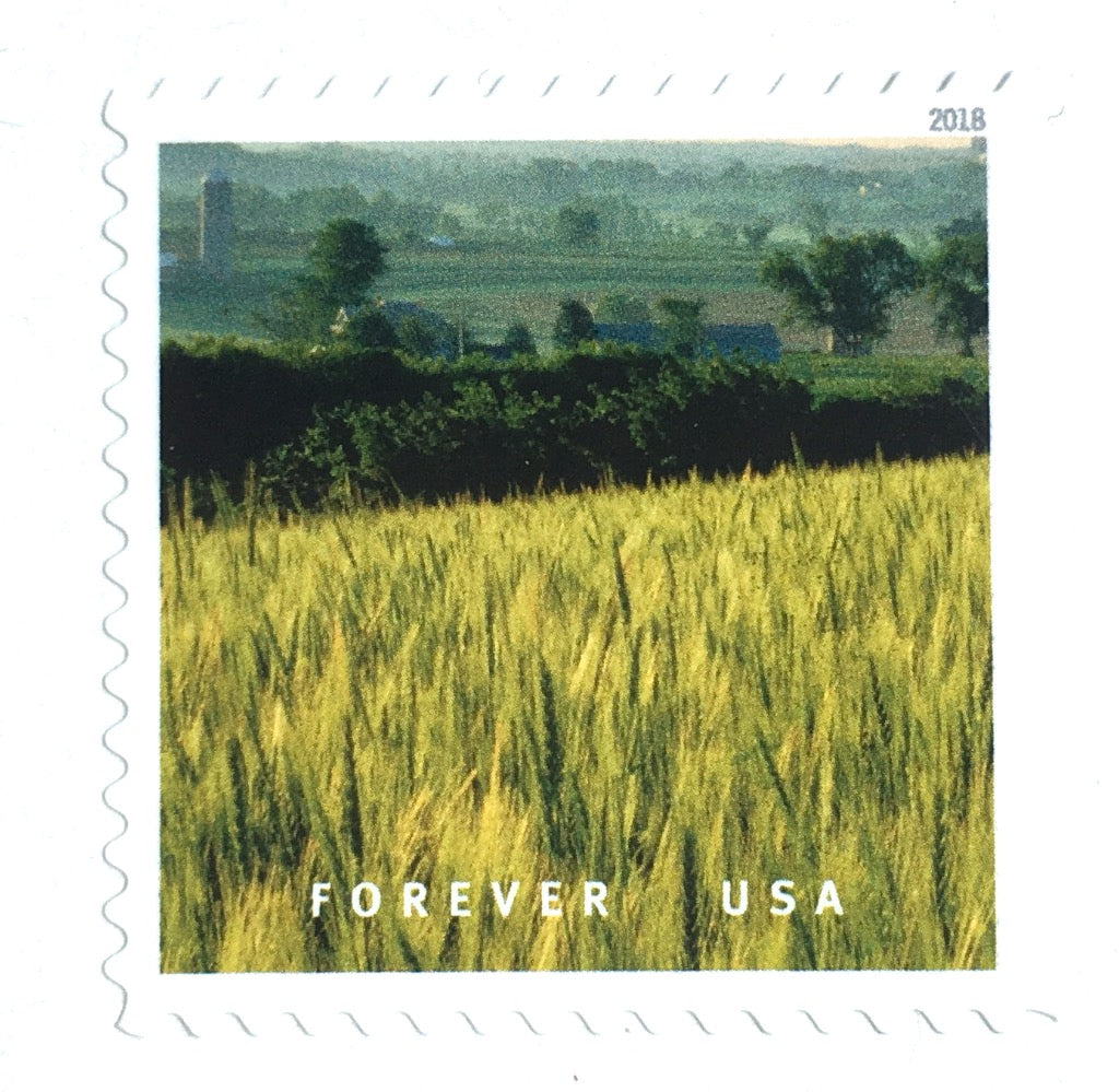 5 Green Field Forever Stamps Pastoral Rolling Hill Grass Landscape Unused Forever Postage Stamps for Mailing