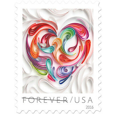 5 Heart Forever Postage Stamps Quilled Paper Heart Unused Love Stamps For Mailing Wedding Invitations and Valentines