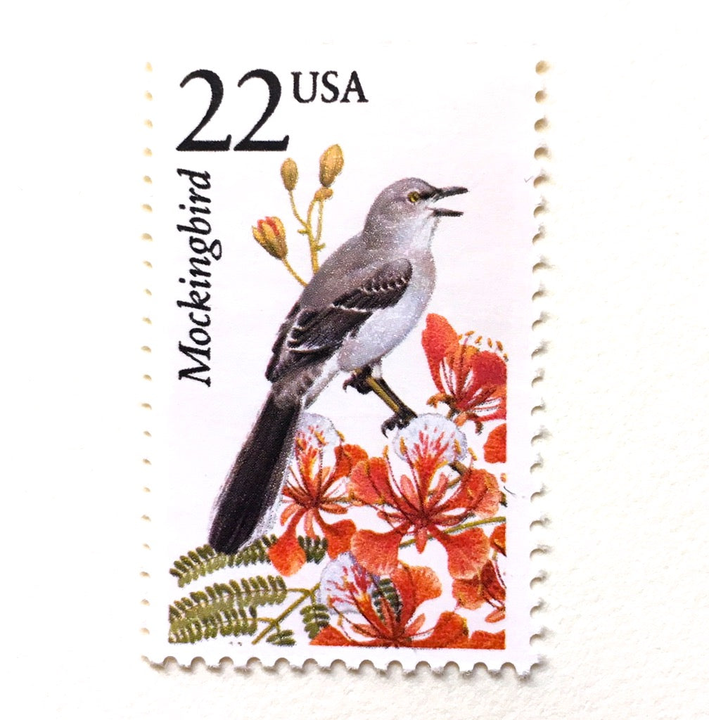 10 Mockingbird Vintage Postage Stamps for Mailing Cards and Wedding Invitations