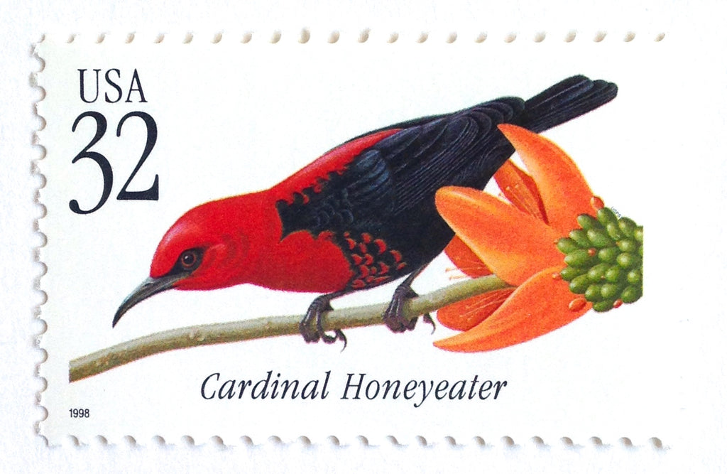 10 Tropical Red Bird Stamps Vintage Unused Postage for Mailing