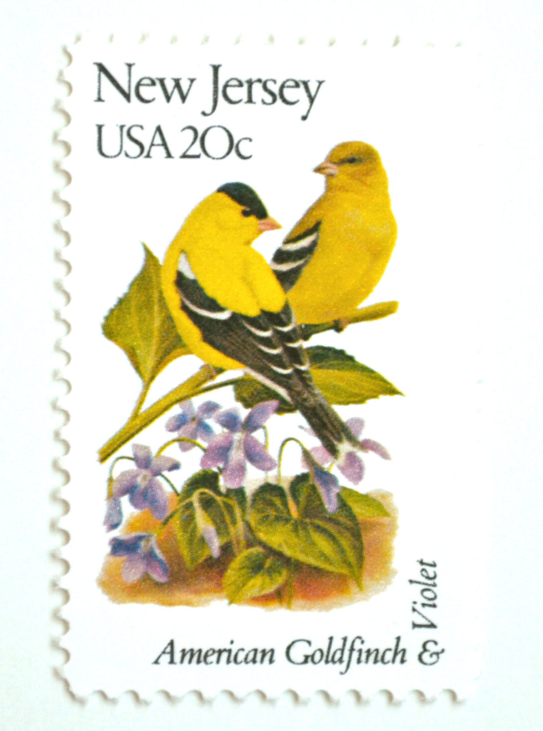 10 New Jersey Stamps Vintage Goldfinch Bird and State Flower Postage for Mailing