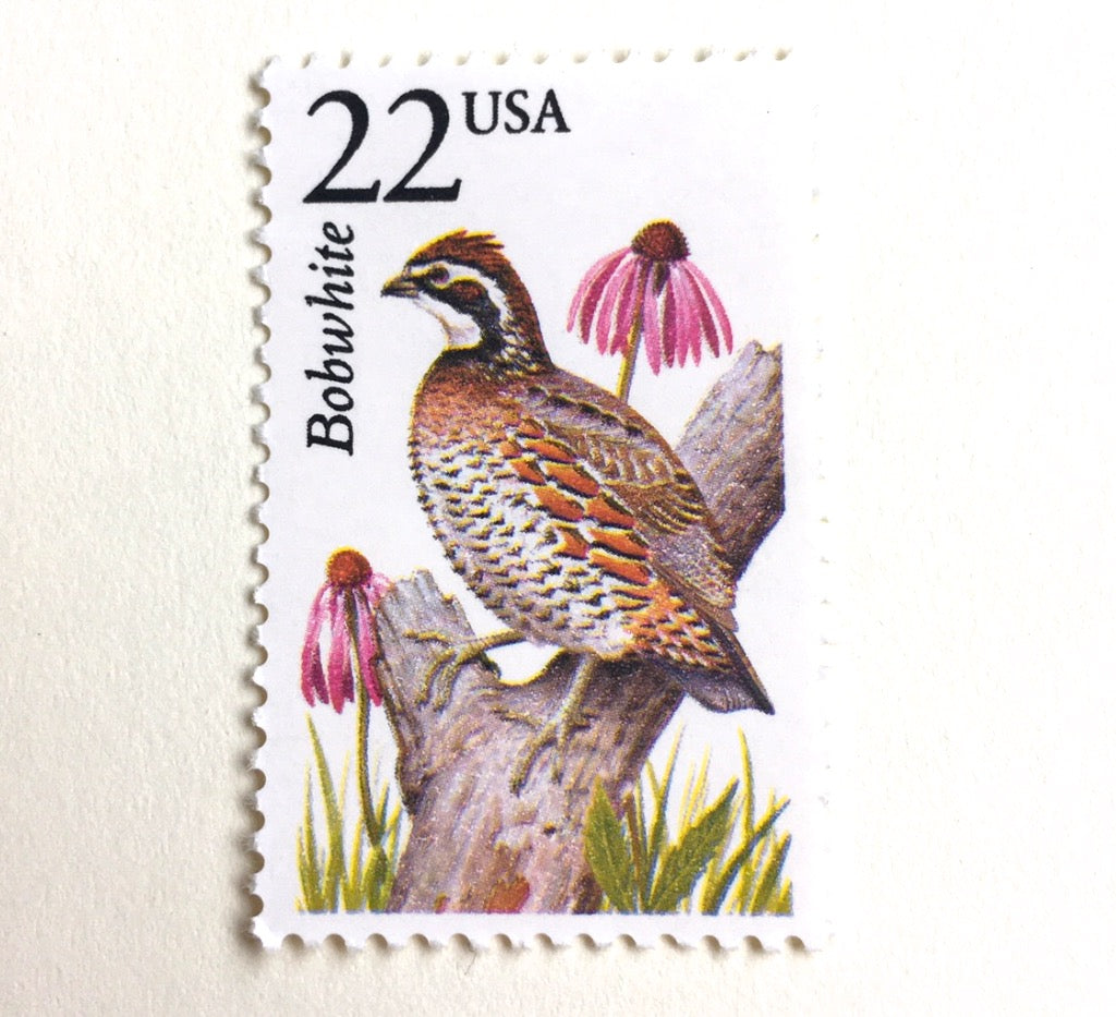 10 Pink Wildflower Forest Bird Stamps Unused Vintage Bobwhite and Pink Echinacea Coneflower Forest Flower Postage Stamps for Mailing