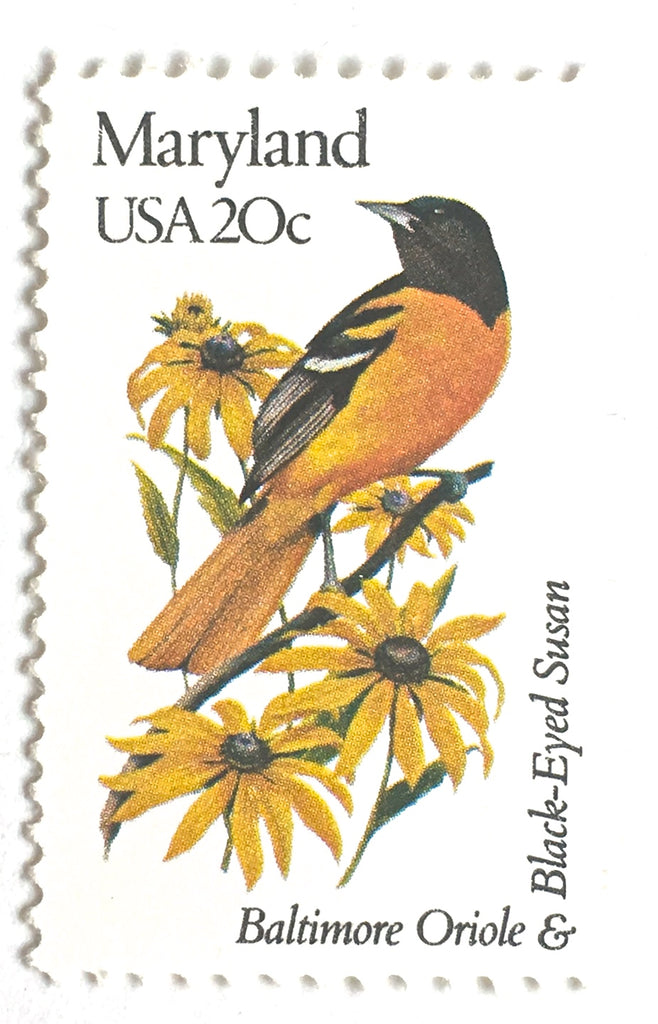 10 Vintage Baltimore Oriole Stamps // Black Eyed Susan Postage // Maryland State Bird and Flower Stamps for Mailing