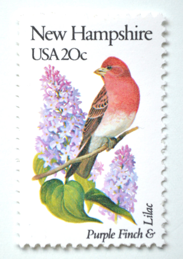 10 Lilac Stamps Vintage Purple Finch New Hampshire State Bird and State Flower Postage for Mailing