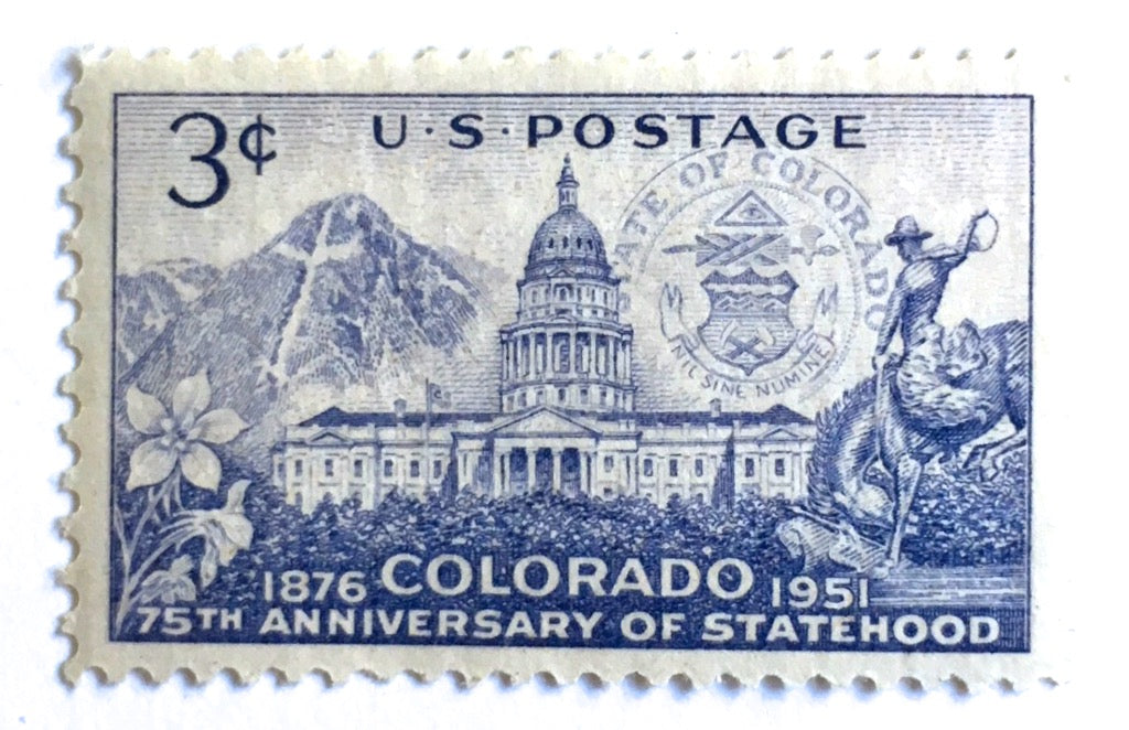 10 Vintage Colorado Postage Unused Stamps Dusty Blue Rocky Mountain Denver Grey Blue Stamps for Mailing