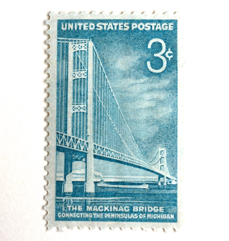 10 Vintage Blue Bridge Stamps Mackinac Bridge Vintage Blue Lake Michigan Island Bridge Postage Stamps for Mailing