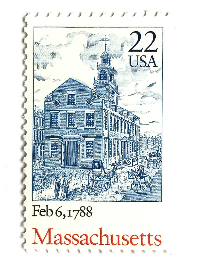 10 Vintage Boston Stamps // Massachusetts Postage Stamps // Blue Colonial Era New England // 22 Cent Vintage Stamps for Mailing