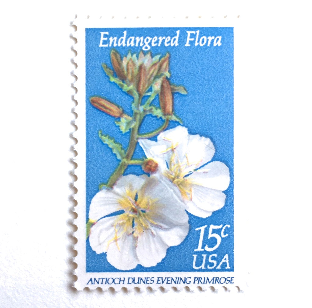 10 Vintage Blue and White Botanical Stamps Unused White Flower Postage // Endangered Flora Stamps for Mailing