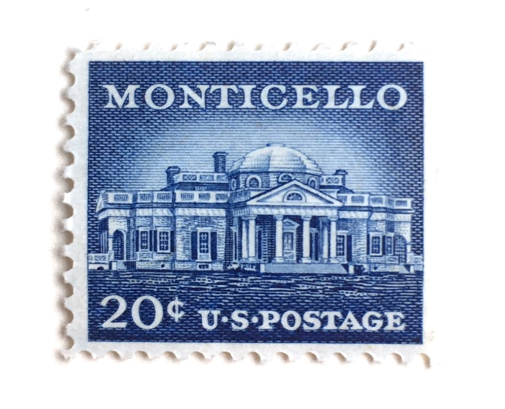 10 Blue Monticello Stamps Unused Vintage Thomas Jefferson Mansion Stamps for Mailing