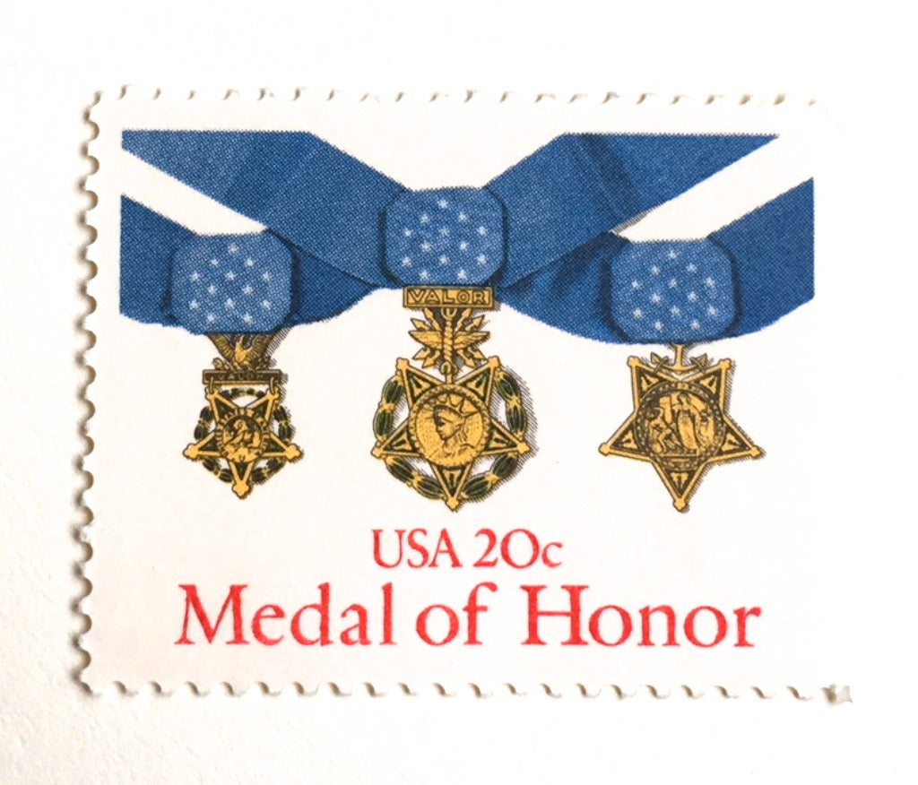 10 Medal of Honor Stamps Unused Vintage Blue Postage Stamps for Mailing