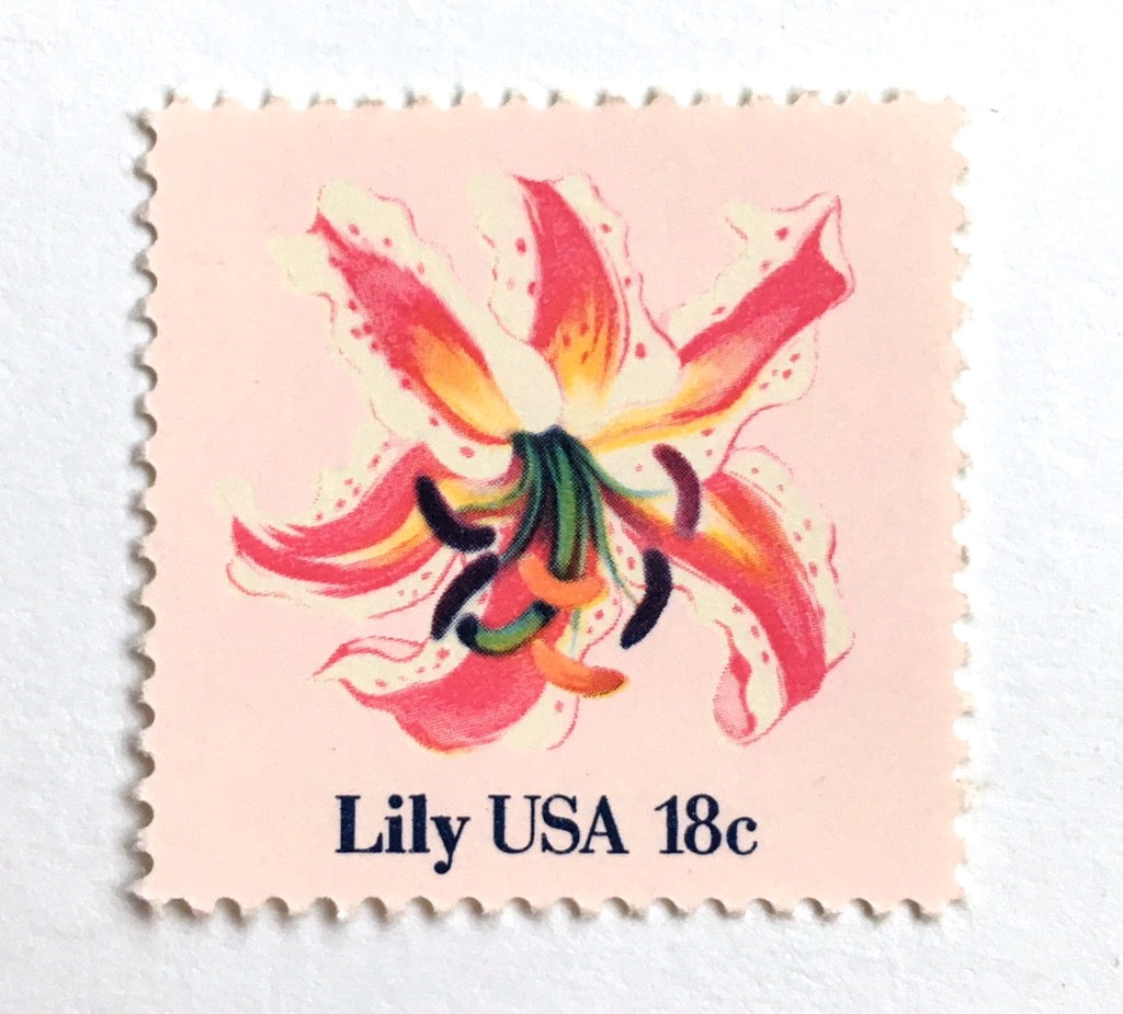 10 Pink Lily Flower Stamps Vintage Unused Garden Bouquet Postage Pink Lilies 18 Cent Stamps for Mailing
