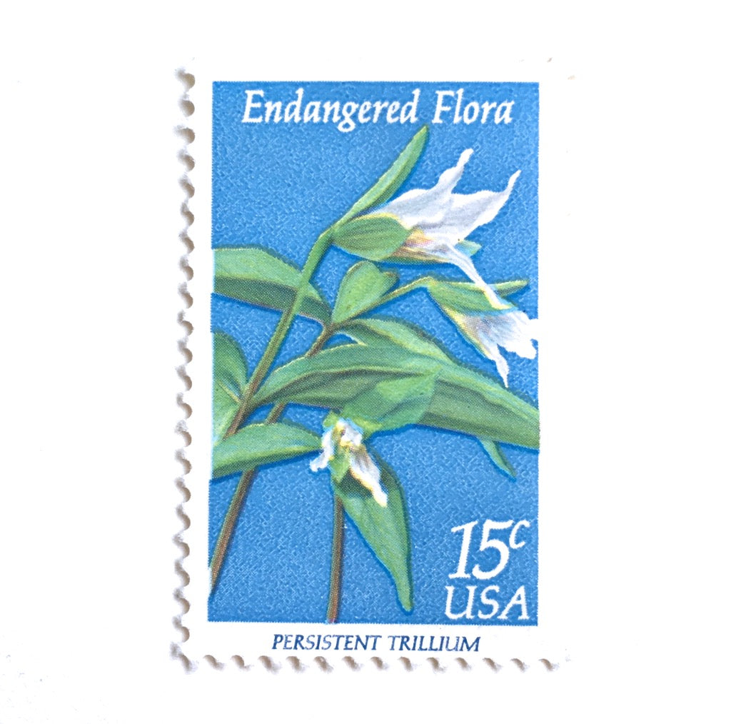 10 Vintage Blue and White Botanical Stamps // Unused White Floral Postage // Endangered Flora // 15 Cent Flower Stamps for Mailing