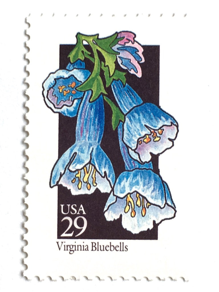 10 Vintage Bluebell Botanical Stamps Unused Blue Floral Postage Bluebells Flower Stamps for Mailing