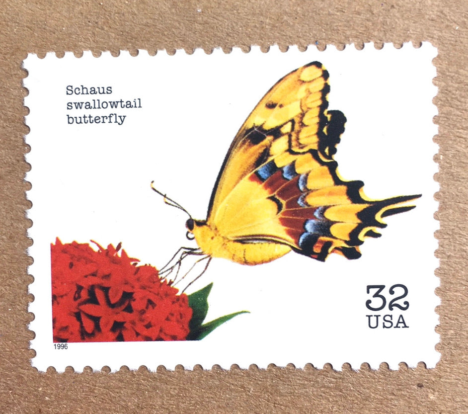 10 Vintage Butterfly Postage Stamps Unused Yellow Swallowtail for Mailing