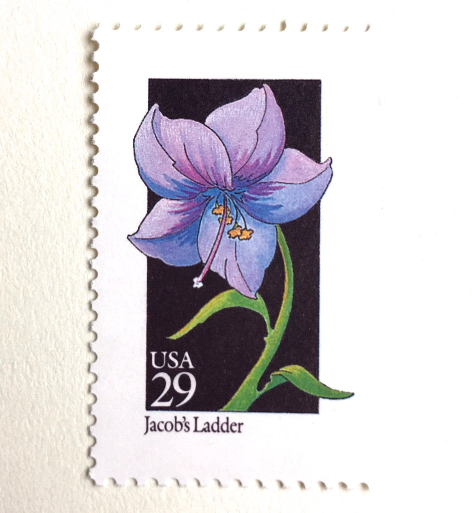 10 Lavender Flower Stamps Vintage Unused Jacob's Ladder Postage Lilac Purple Wild Flower Stamps for Mailing