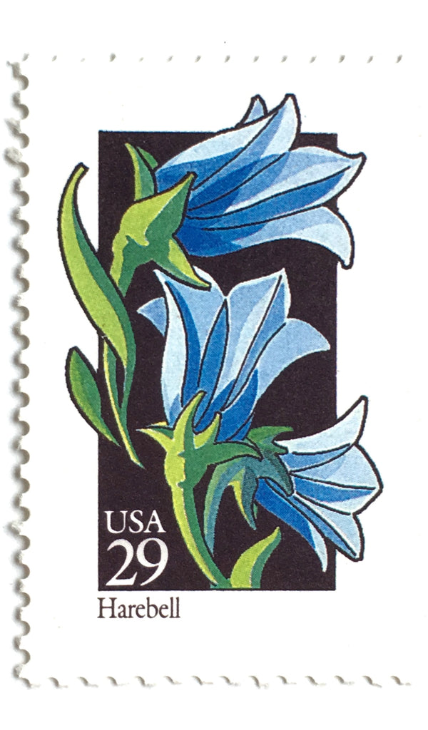 10 Vintage Blue Botanical Stamps // Unused Blue Floral Postage // Blue Harebell Flower Stamps for Mailing