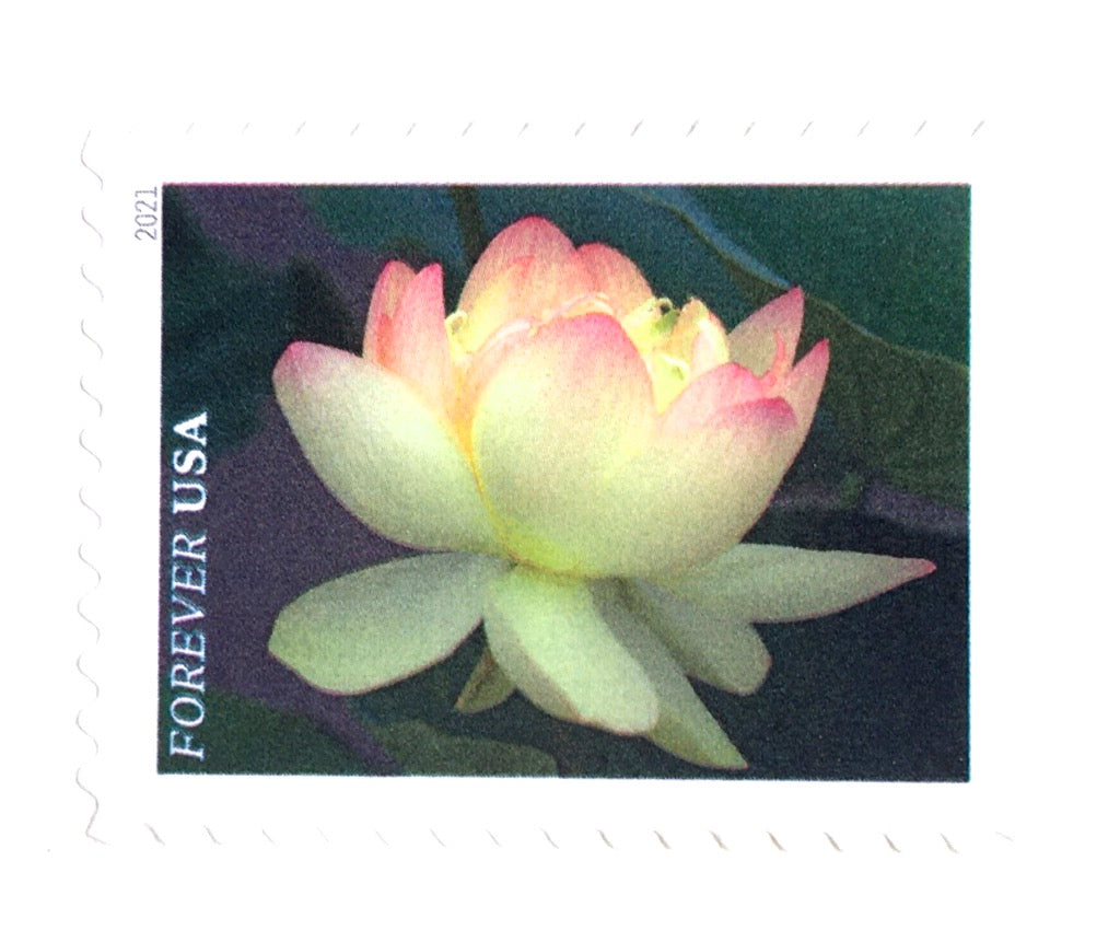 10 Lotus Flower Forever Stamps Unused Pink and Yellow Water Lily Lotus Postage Green Forever Stamps for Mailing