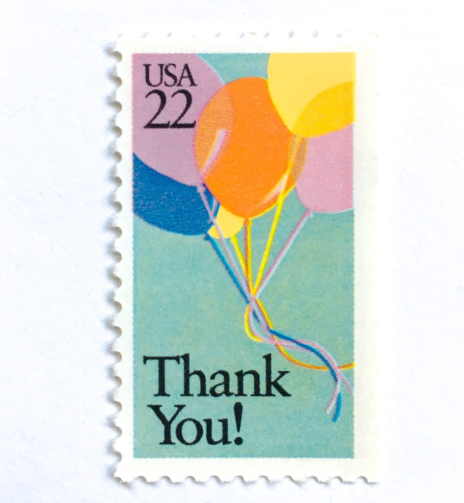 10 Thank You Stamps Vintage Balloon Celebration Postage Stamps for Mailing