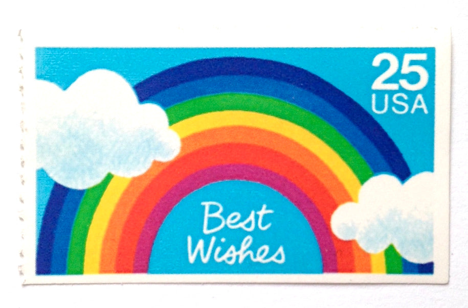 10 Rainbow Stamps Best Wishes Unused Vintage Postage Stamps for Mailing