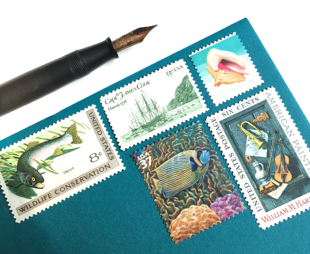 My vintage stamps are perfectly suitable for use as postage for mailing, as long as you use additional stamps to add up to the current postage rate. These beautiful postage stamps will add an enchanting touch to your beach destination or tropical wedding invitations or greeting cards.