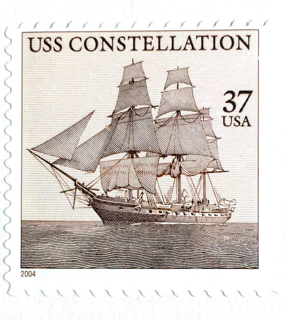 10 Sailing Ship Stamps // Nautical Postage Stamps // USS Constellation // Sea Sailing Vessel Stamps for Mailing