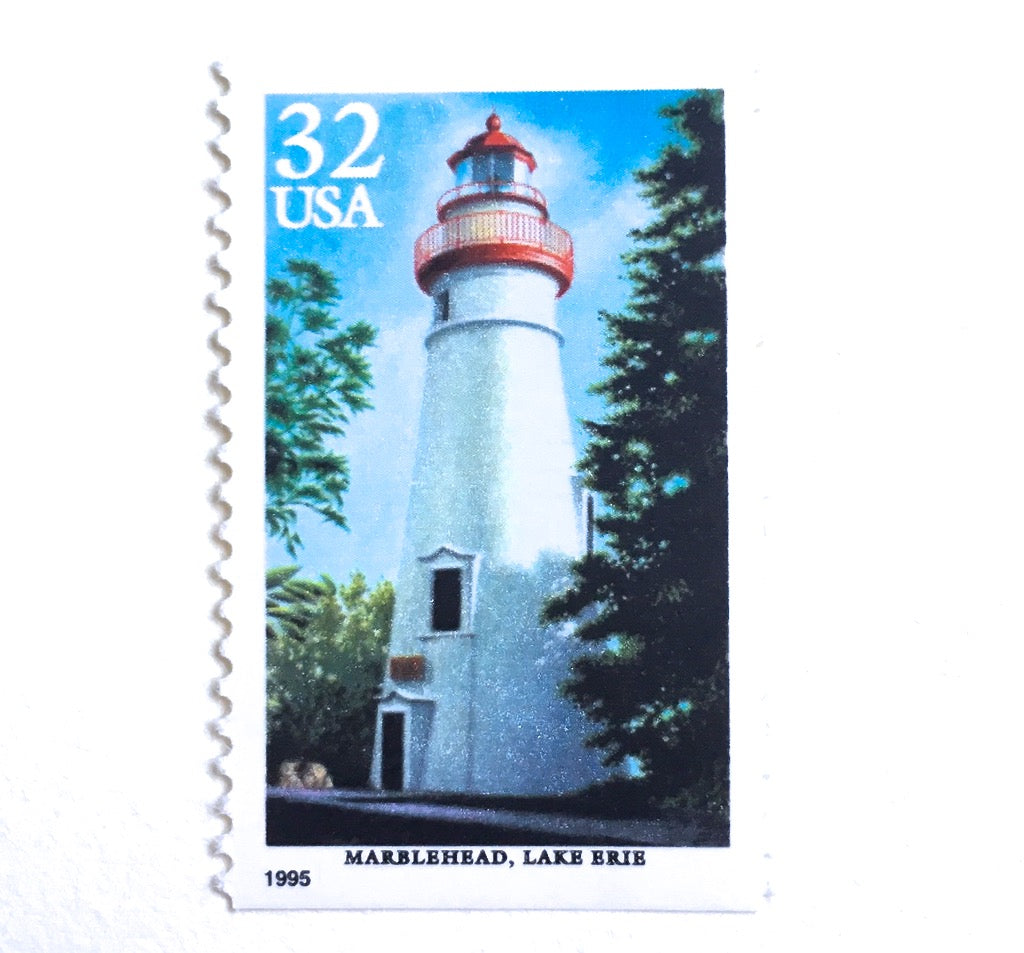 10 Lighthouse Stamps Vintage Nautical Postage Stamps Lake Erie Marblehead Lighthouse Stamps for Mailing