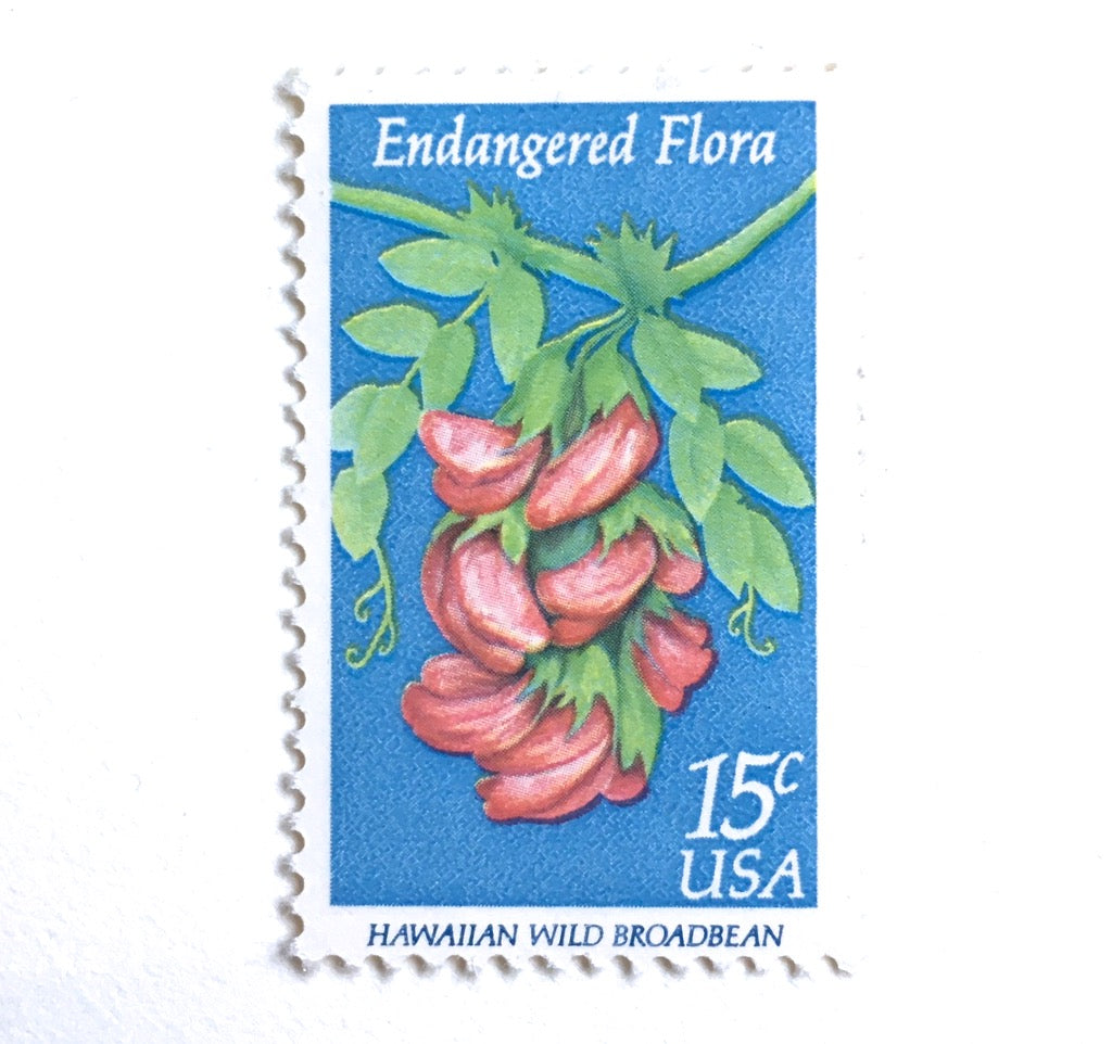 10 Vintage Blue Botanical Stamps Unused Postage Blue and Green 15 Cent Tropical Pink Flower Stamps for Mailing