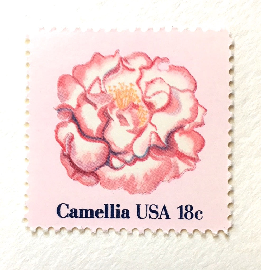 10 Pink Camellia Flower 18 Cent Stamps Unused Vintage Floral Postage Pink Botanical Flower Garden Stamps for Mailing