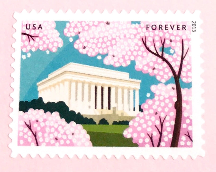 10 Lincoln Memorial Forever Stamps Cherry Blossom Washington D.C. Postage for Mailing