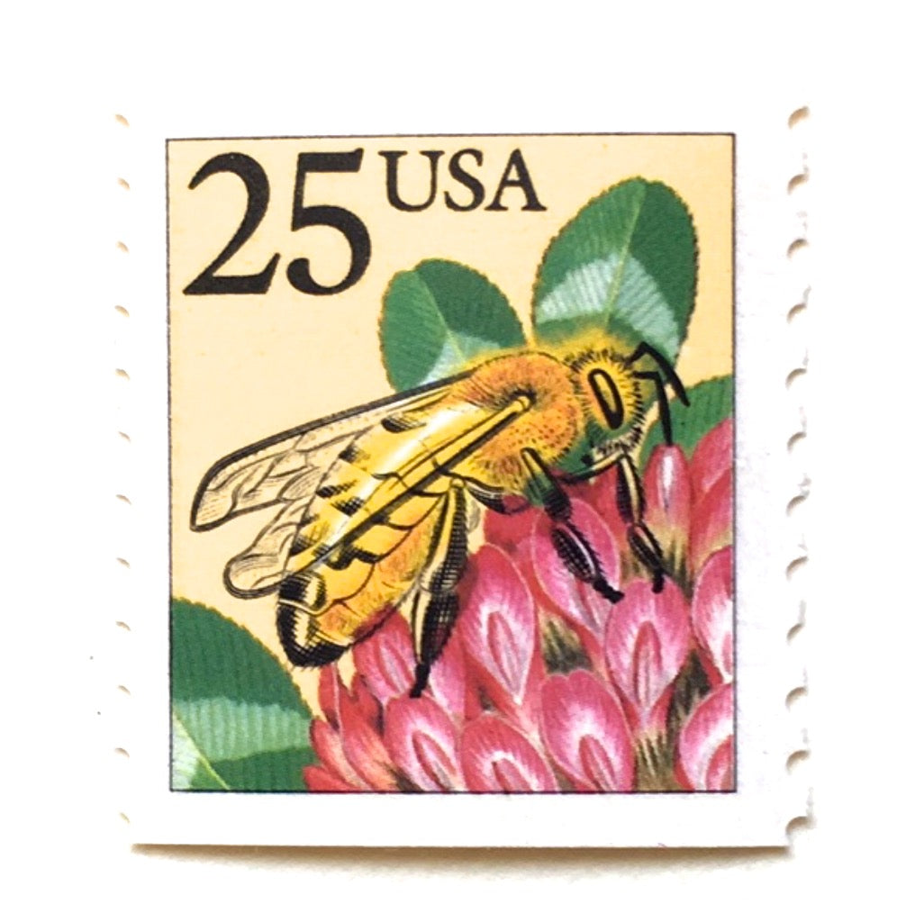 10 Vintage Bee Postage Stamps Clover Flower and Bee Stamps Honeybee 25 Cent Vintage Unused Postage for Mailing