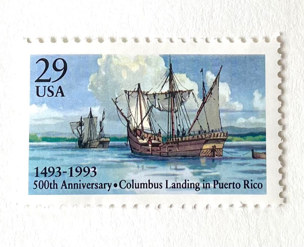 10 Vintage Blue Sailing Ship Stamps / Nautical Postage Stamps / Voyage of Christopher Columbus / Sea Sailing Stamps for Mailing