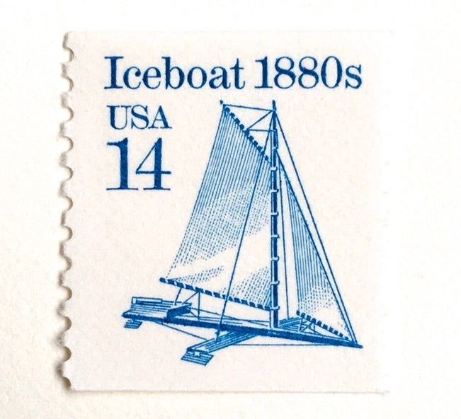 10 Sailboat Stamps Vintage Blue Iceboat Nautical Postage Stamps for Mailing