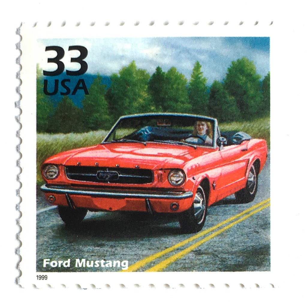 10 Sixties Ford Mustang Postage Stamps Vintage 1960s Red Convertible Classic Car Stamps for Mailing