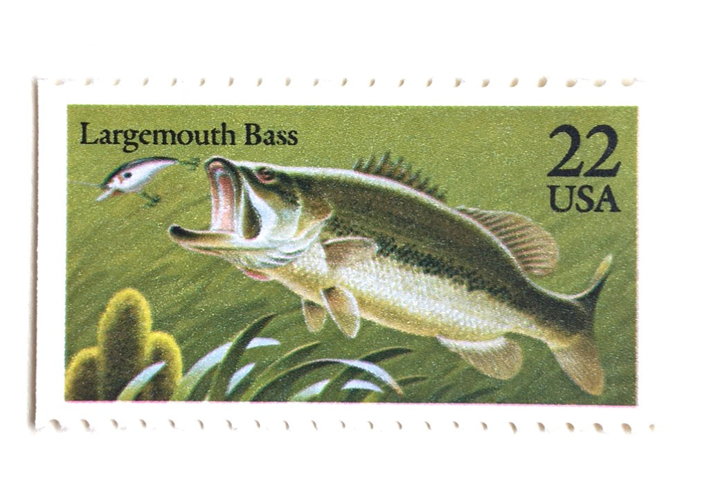 10 Largemouth Bass Postage Stamps Unused Vintage Fishing Stamps for Mailing