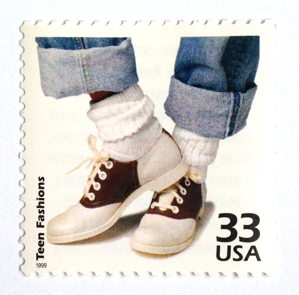 10 Saddle Shoes Stamps Vintage 1950s Teen Fashion Postage for Mailing