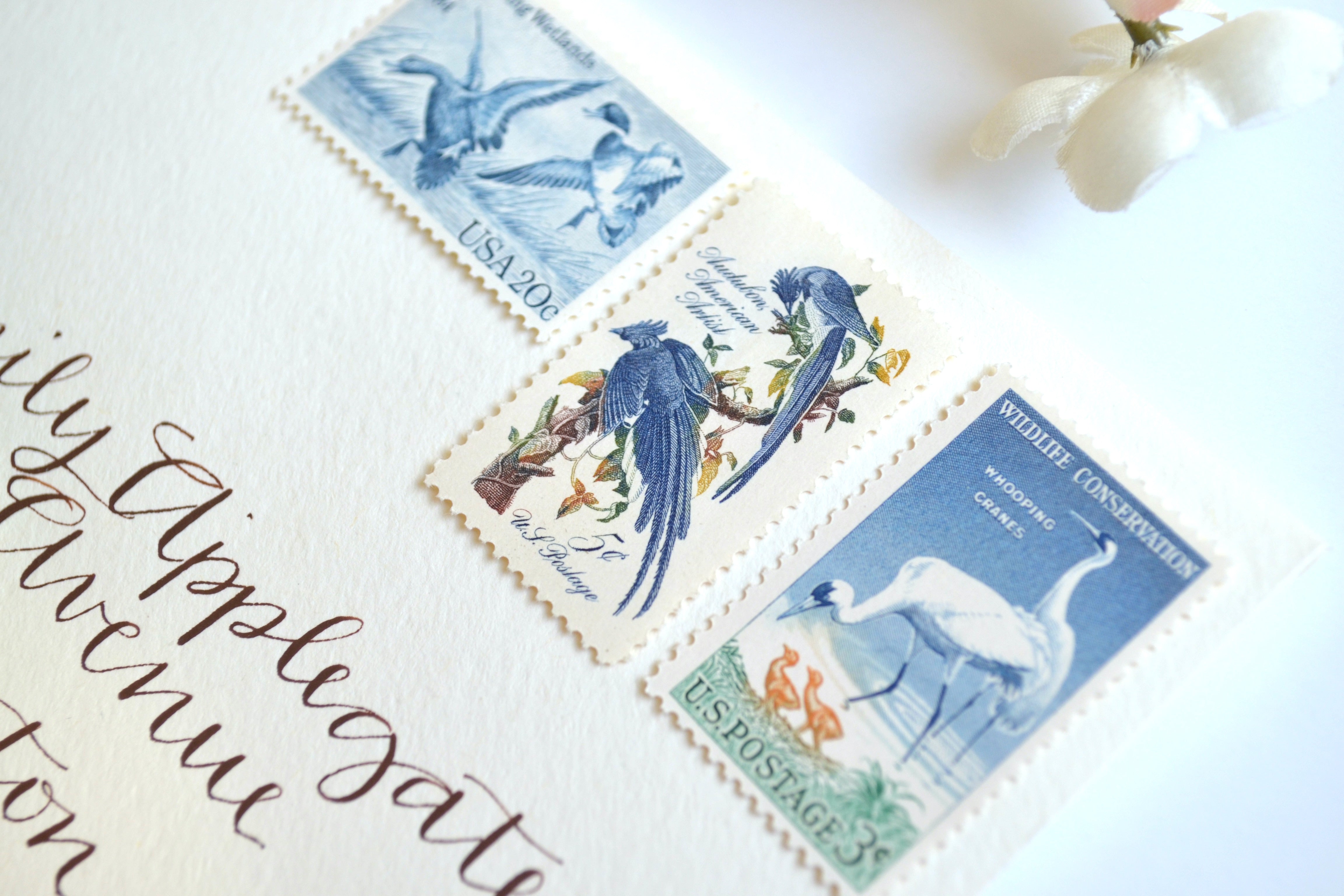 These crane stamps are perfectly suitable for use as postage for mailing, as long as you use additional stamps to add up to the current postage rate. These beautiful blue vintage stamps will add an enchanting touch to your Florida cards, party or beach / nautical wedding invitations or save the dates.