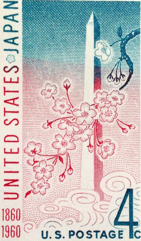 10 Vintage Cherry Blossom Stamps Unused Washington Monument Washington D.C. National Mall 1960 Pink Postage Stamps for Mailing