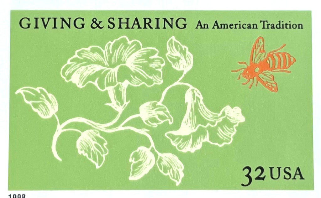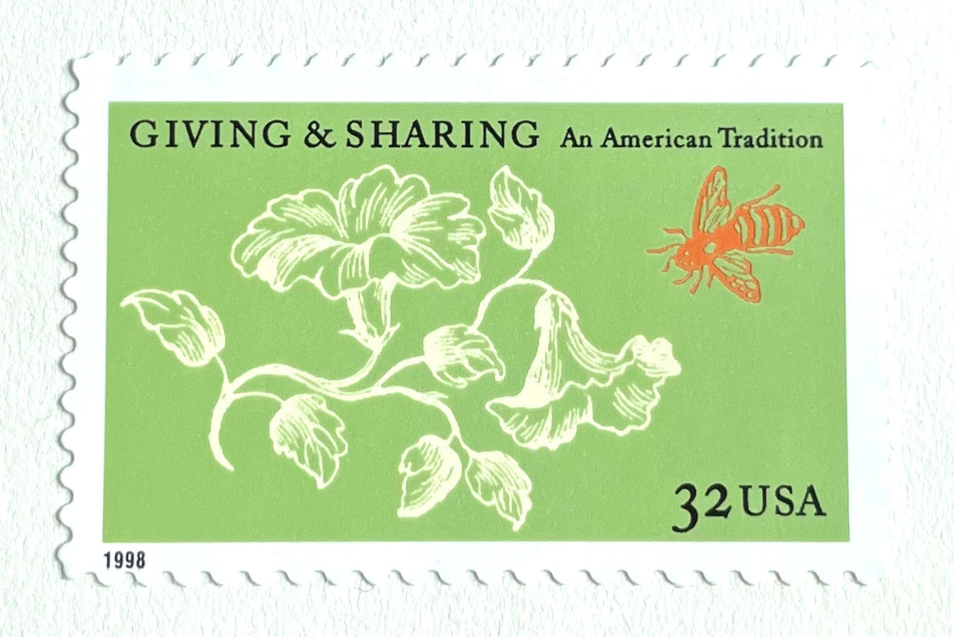 10 Floral Postage Stamps Green and White Vintage Garden Honey Bee Stamps Giving and Sharing Unused Pollination Postage for Mailing