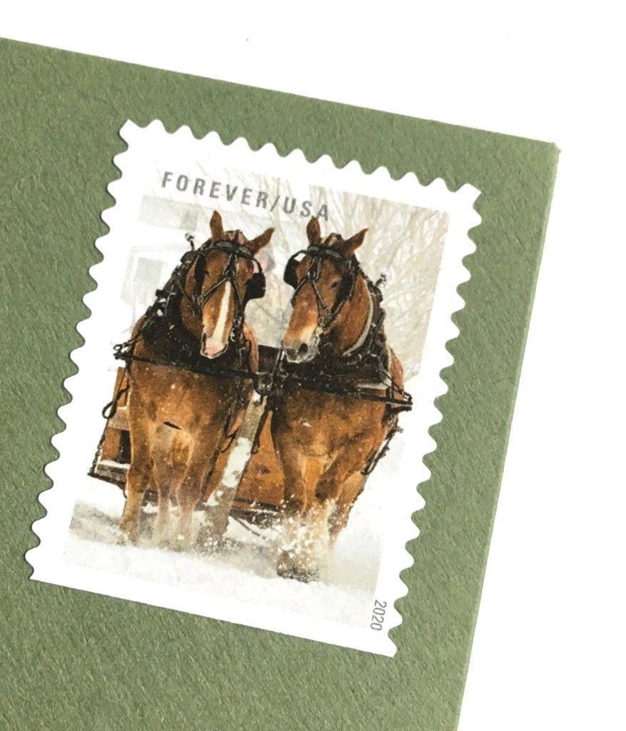 10 Forever Horse Stamps Christmas Sleigh Ride Holiday Horses Stamps for Mailing Christmas Cards