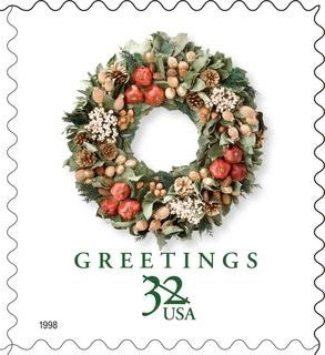 These Victorian holiday wreath stamps are perfectly suitable for use as postage for mailing, as long as you use additional stamps to add up to the current postage rate. These beautiful fruited stamps remind me of "the Merry Christmas Wreath" from It's A Wonderful Life. They will add a charming touch to your Christmas cards, holiday mail or winter wedding invitations or greeting cards.