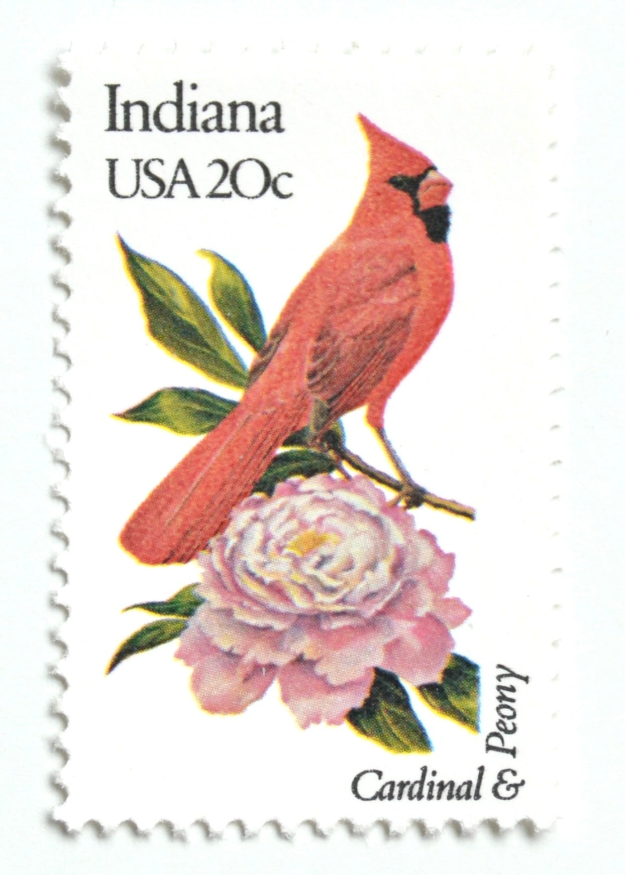 10 Vintage Indiana Postage Stamps // Indiana State Bird - Cardinal // State Flower - Peony Unused Stamps for Mailing