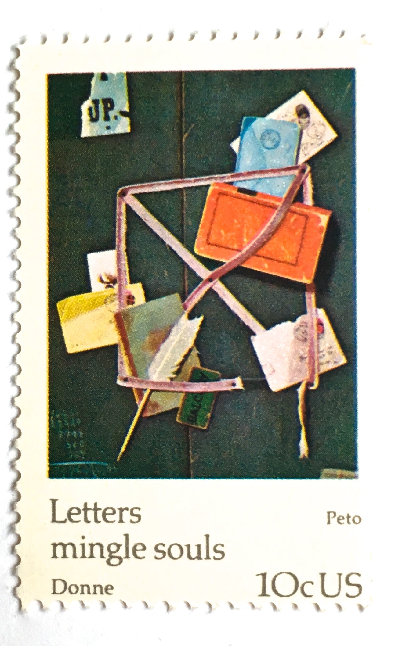 10 Letters & Envelopes Postage Stamps // Letters Mingle Souls // Vintage Letter Writing Painting / 10 Cent Postal Postage Stamps for Mailing